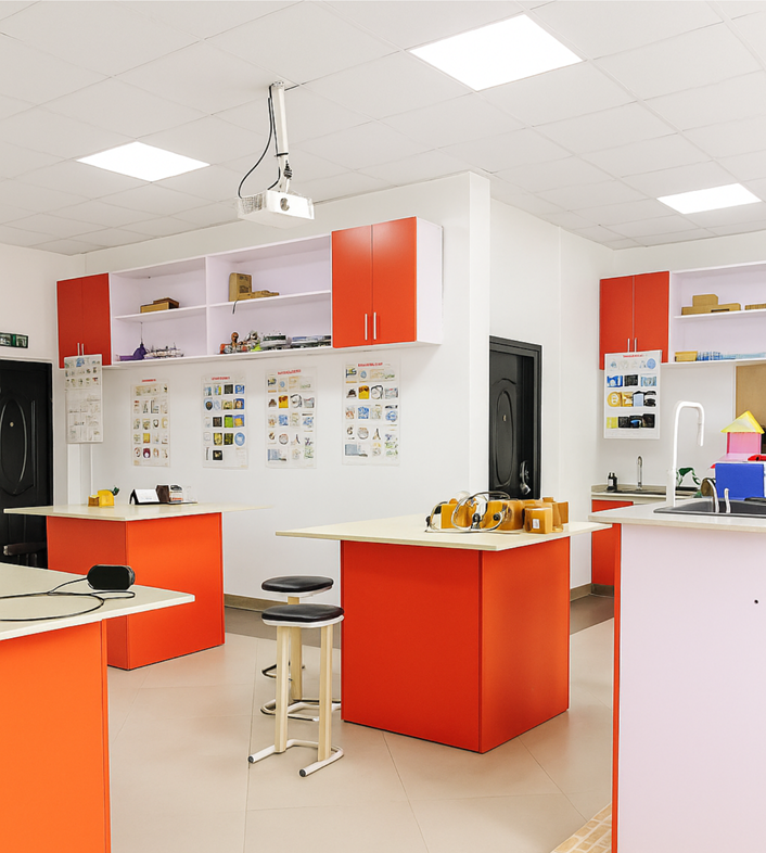 LERN MOREOur science laboratories are separated and fully equipped for biology, chemistry, and physics experiments, fostering hands-on learning and scientific discovery. Safety features like fume hoods, emergency showers, and fire extinguishers are standard. Students are encouraged to explore, innovate, and conduct research under the guidance of qualified instructors.